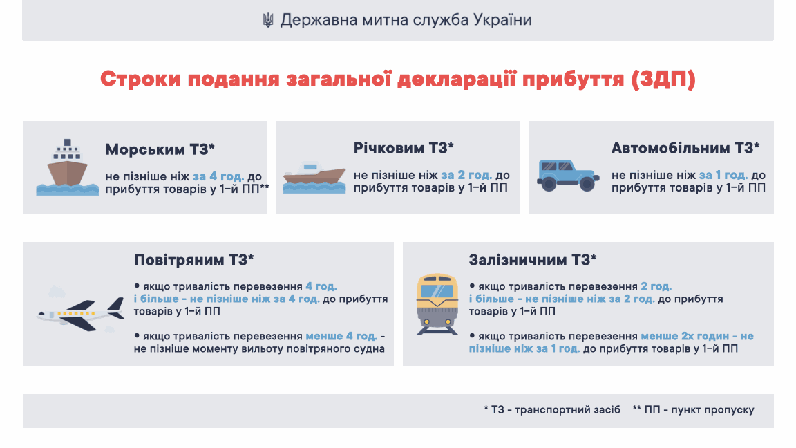 Строки залежать від засобів та способів переміщення товарів через митний кордон України: